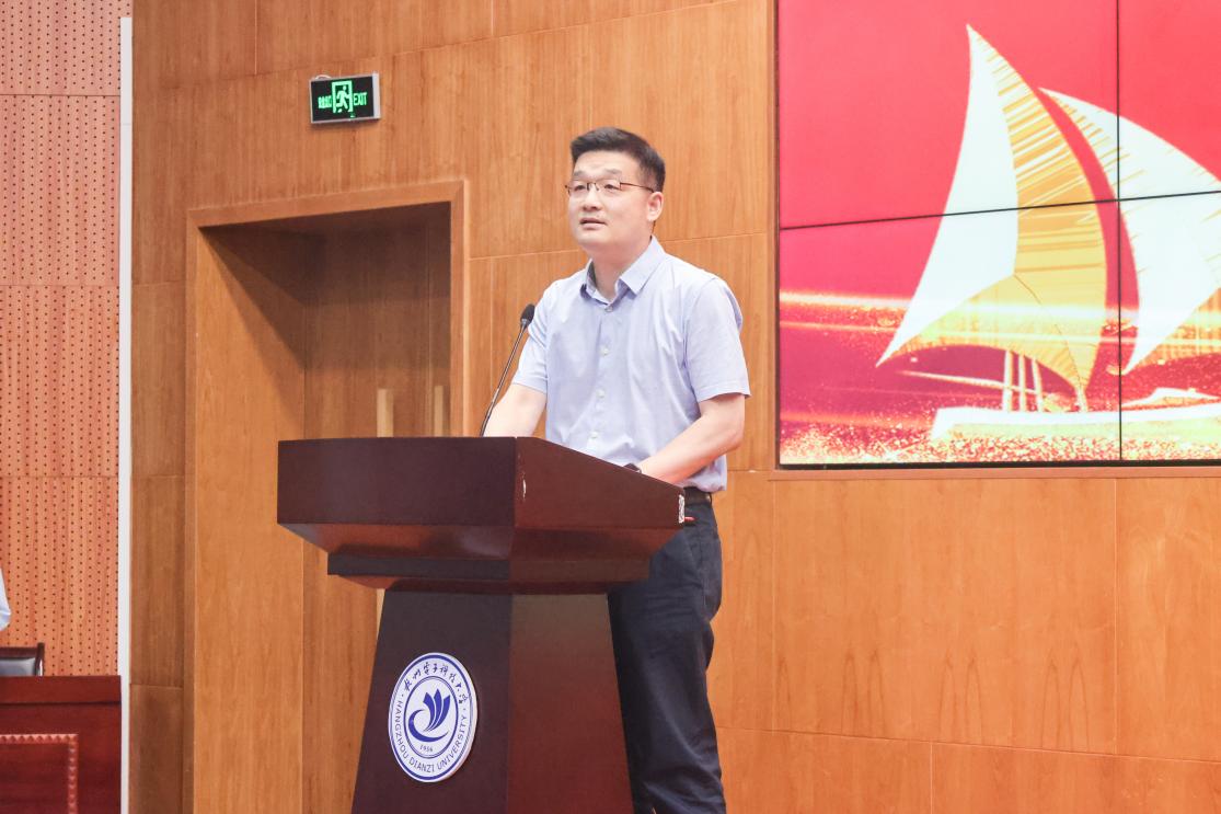 校研究生院院长范影乐代表学校致辞,感谢一直以来江苏帝奥微电子股份有限公司一直以来的无私捐助,并表示长期以来,学校非常重视校企合作,杭电与江苏帝奥微电子股份有限公司联合举办研究生电子设计竞赛是深化校企合作、加强产教融合、谋求发展共赢的生动实践,研究生电子设计竞赛以激励创新为办赛宗旨,以赛促学,以赛促教,不断发现培育经济社会急需的创新型人才。